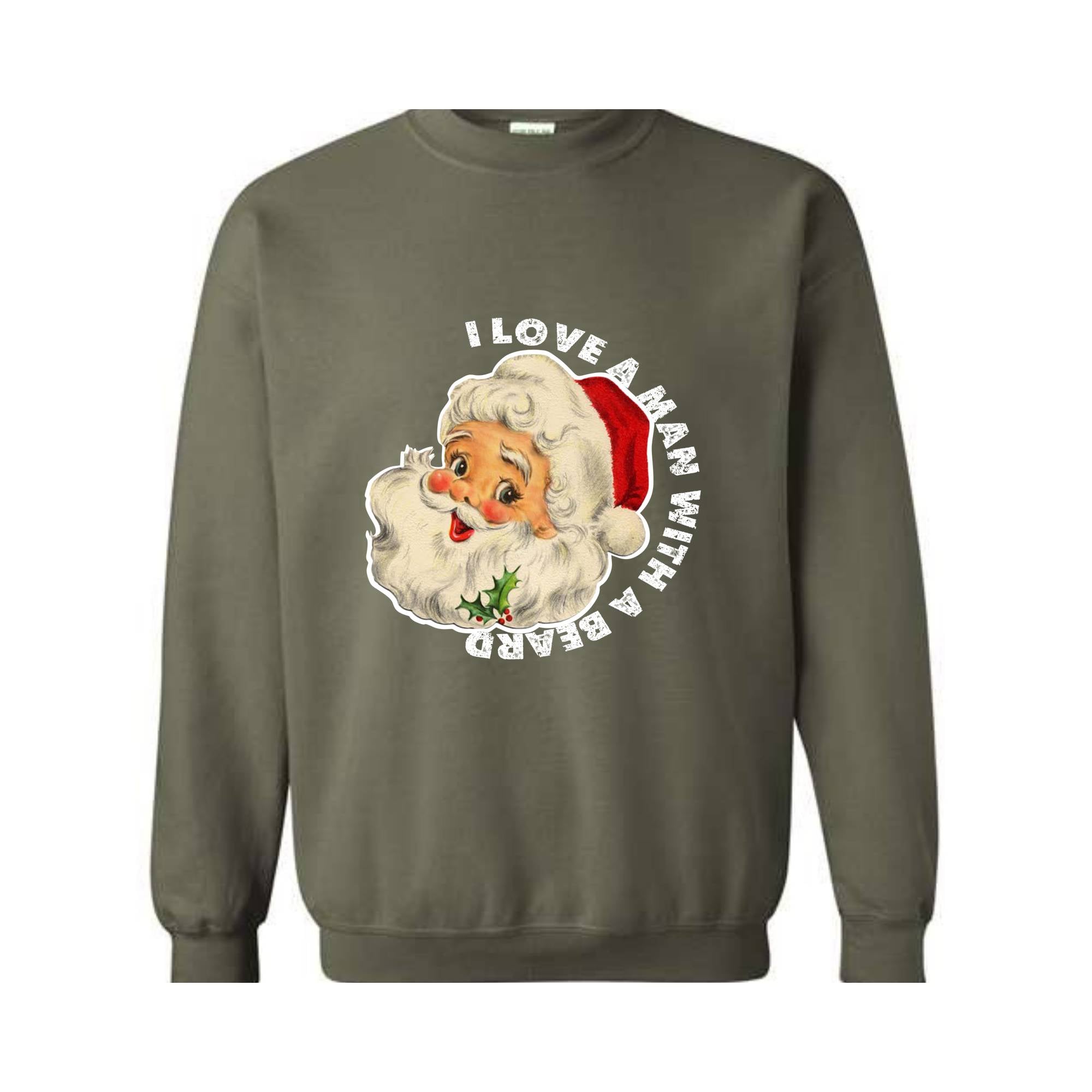 I Love a Man With a Beard Santa Sweatshirt, Funny Xmas Sweatshirt, Santa Sweatshirt, Holiday Sweatshirt, Christmas Costume