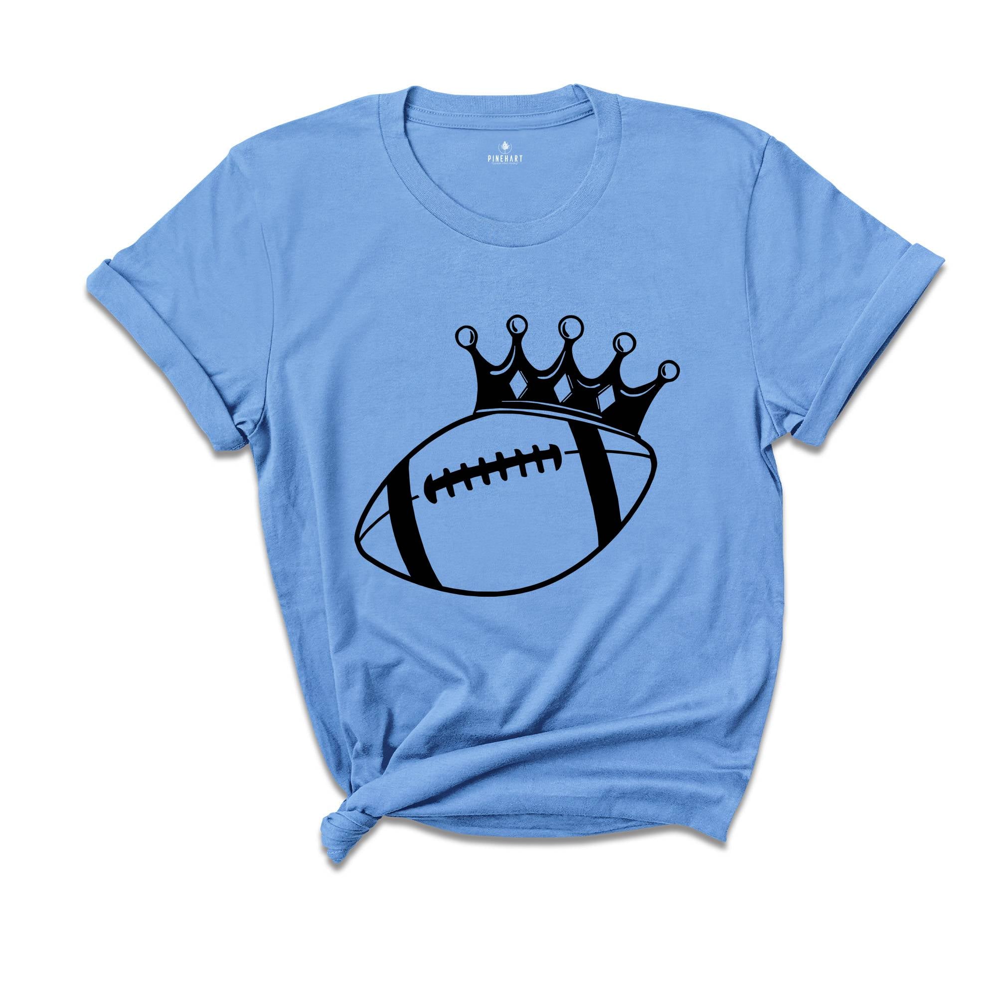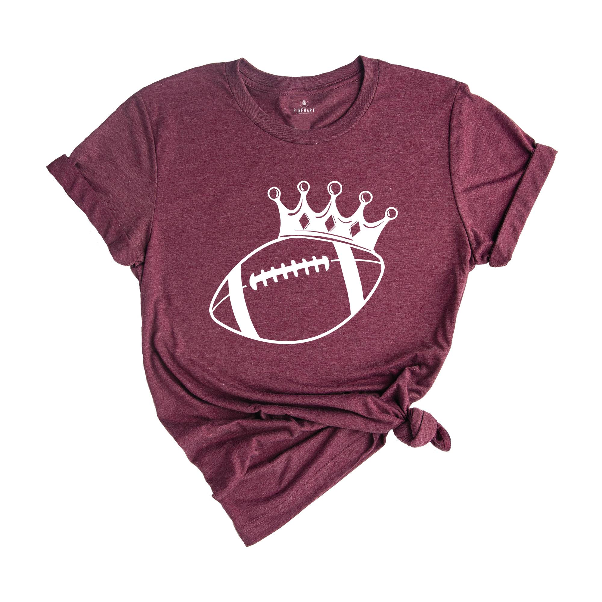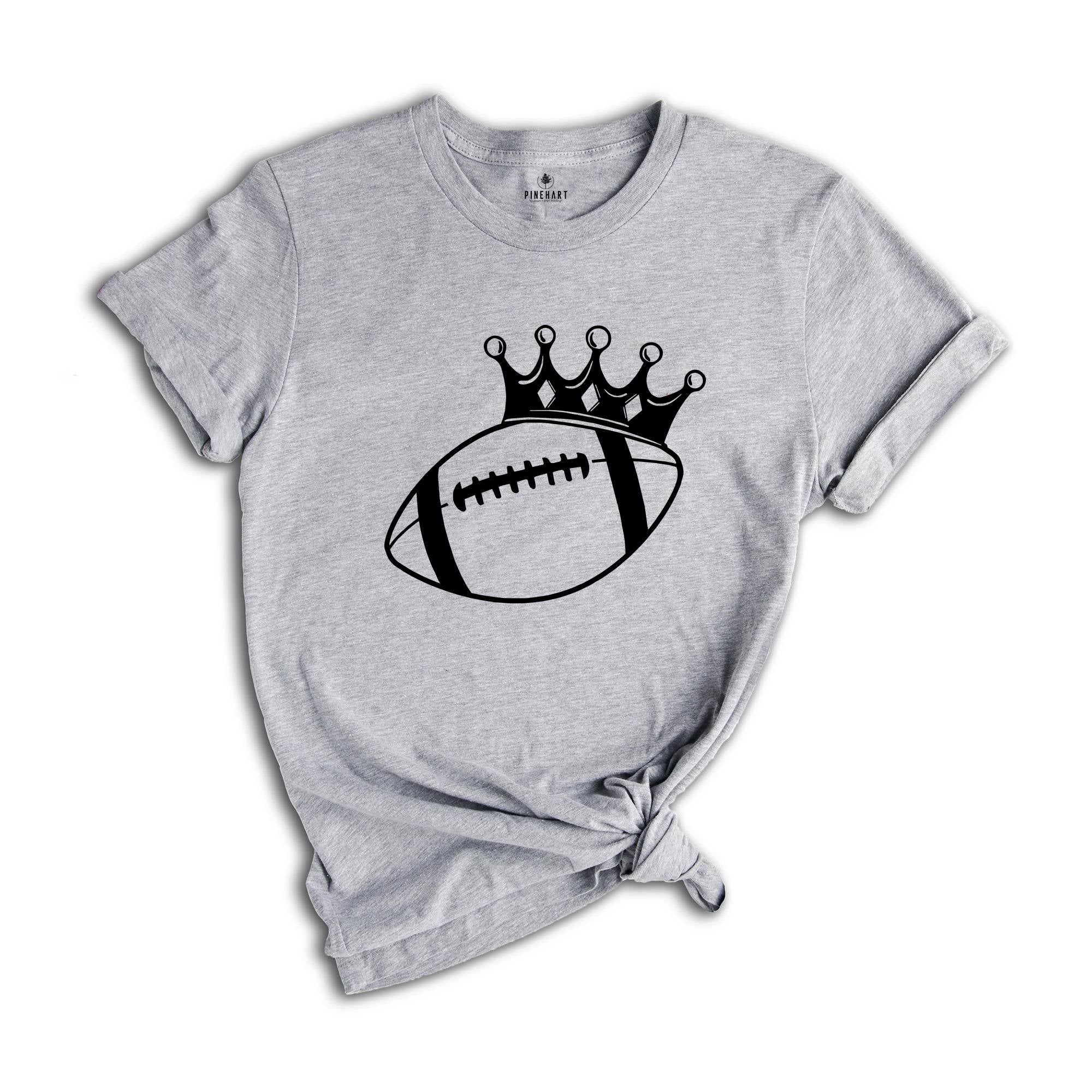 Let your love for the game shine through with the Football Crown Shirt. Featuring a regal crown design, this shirt is a tribute to the kings of the field. Show your fandom in a fun, stylish way that celebrates the intensity of football season.