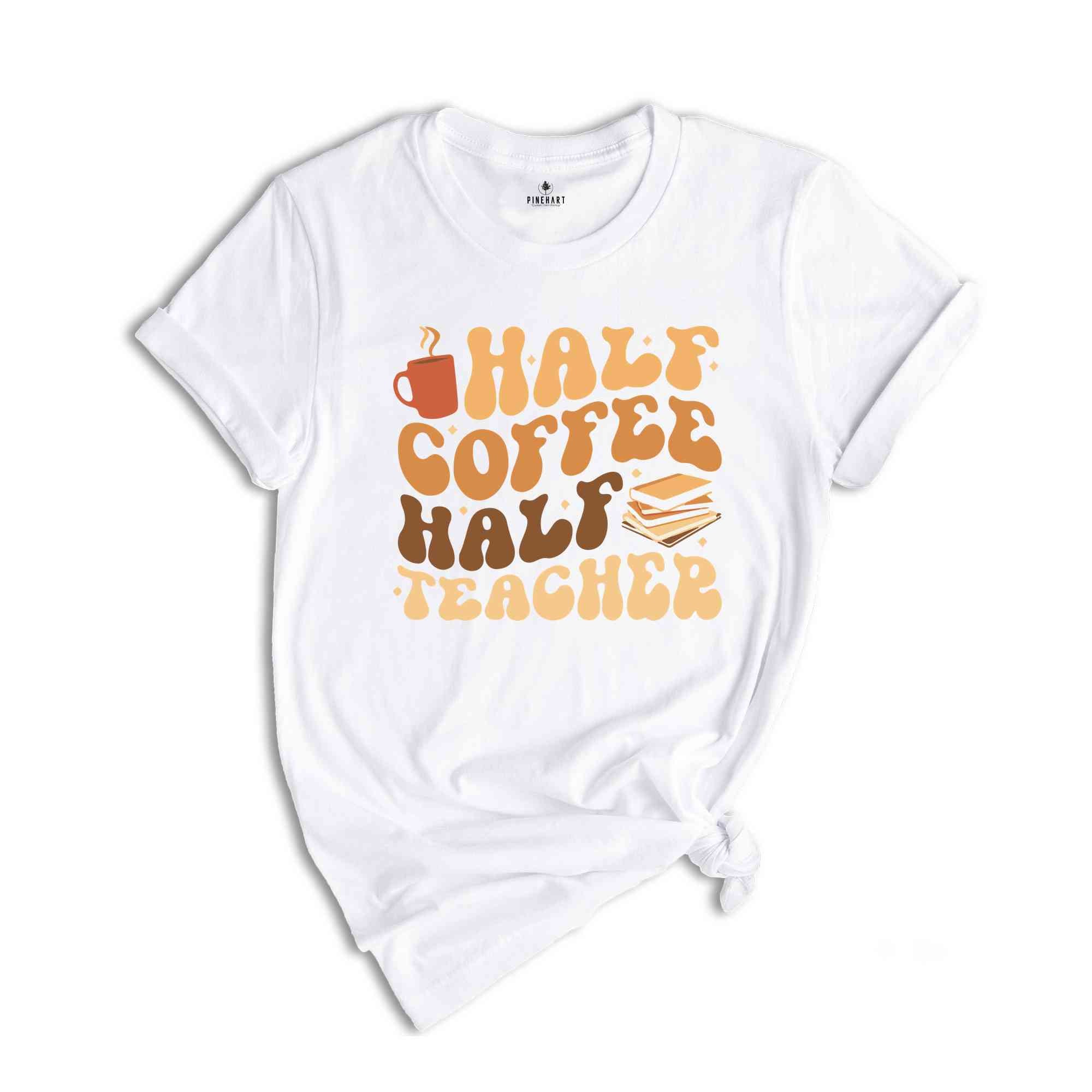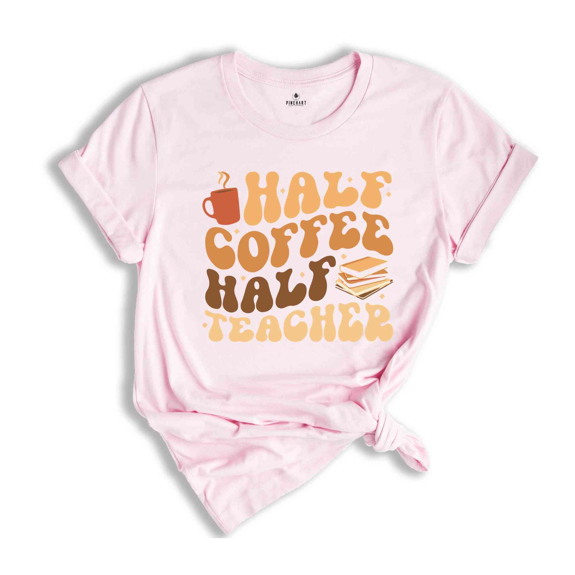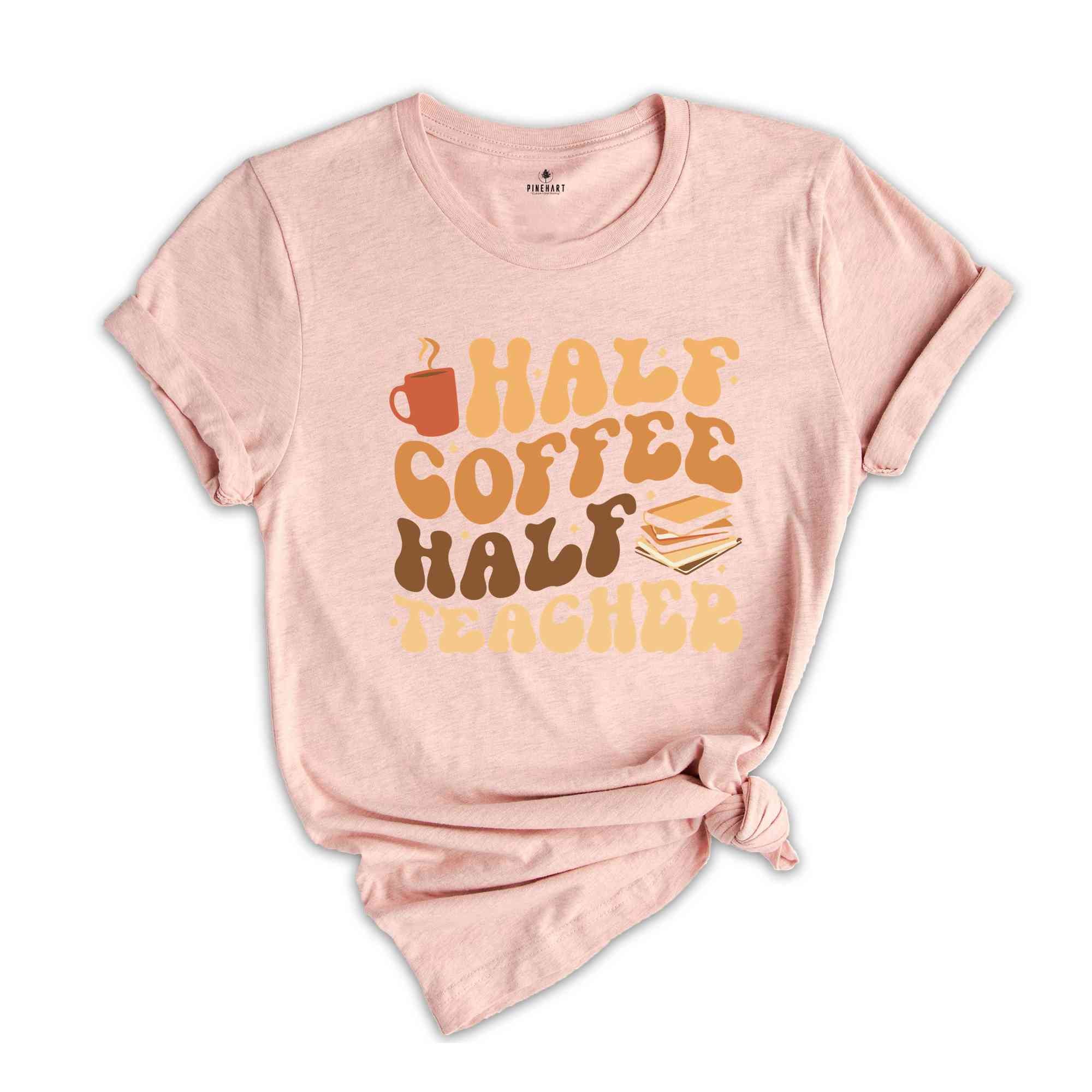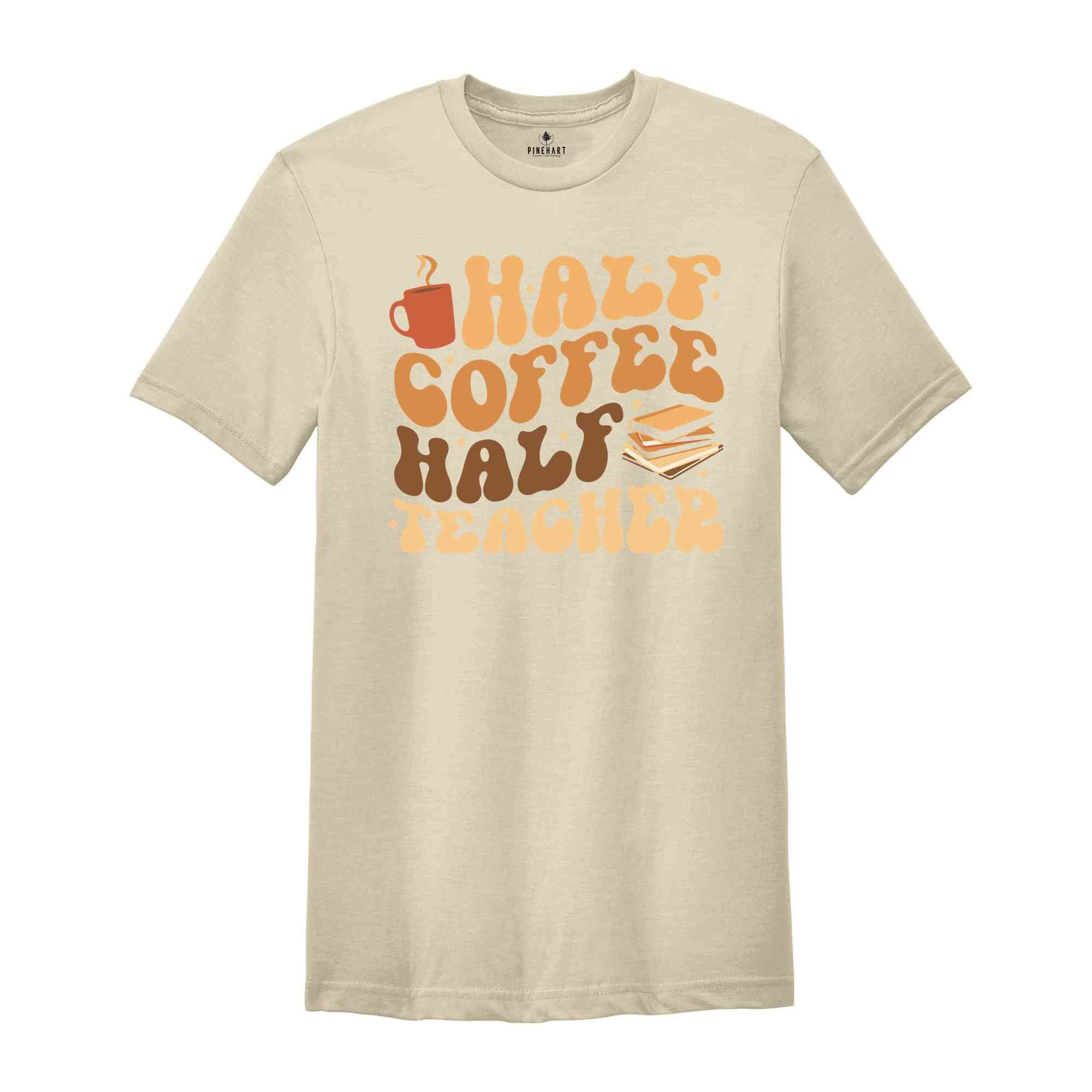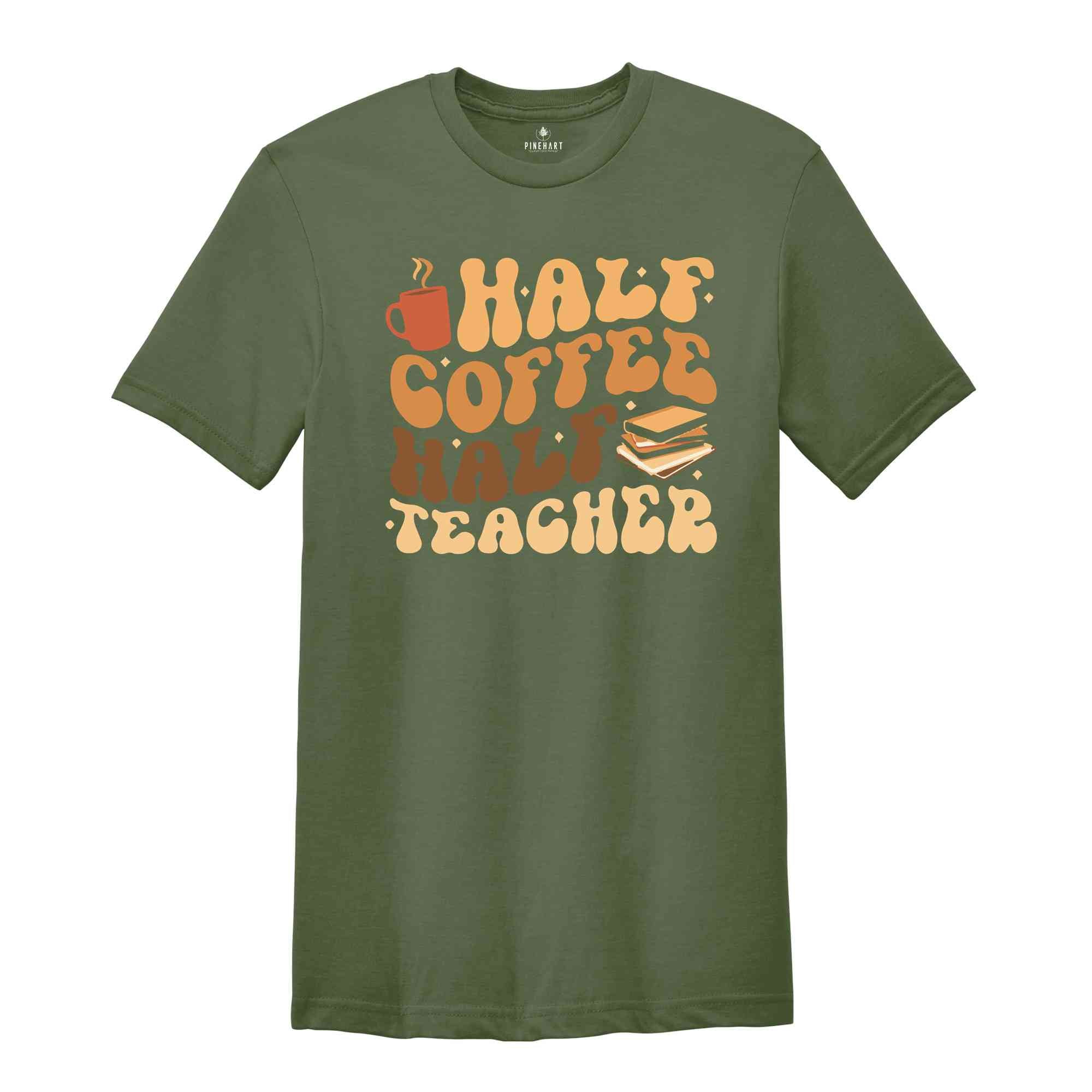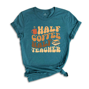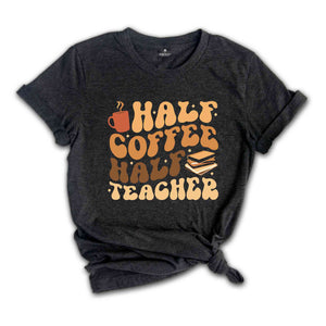 Half Coffee Half Teacher Shirt, Gift For Teacher, Kindergarten Teacher Tee, Coffee Lover Shirt, Teacher Appreciation Gift, Funny Teacher Tee