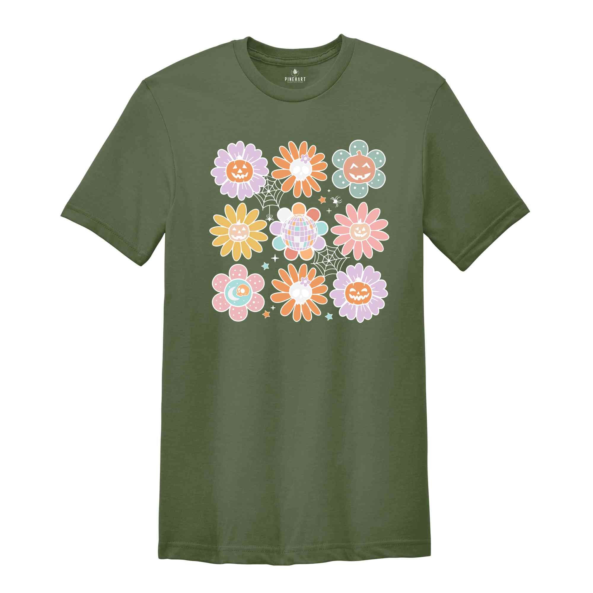 Retro Pumpkins And Flowers Shirt, Pumpkins Shirt, Halloween Shirt, Halloween Vibes Shirt, Fall Vibes Shirt, Retro Fall Shirt, Pumpkin Flower
