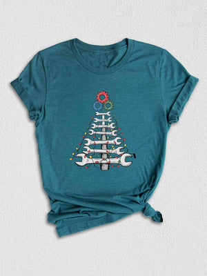 Celebrate in style with our unique Wrench Xmas Tree design! This creative shirt is perfect for holiday gatherings and adds a fun twist to traditional Christmas wear.